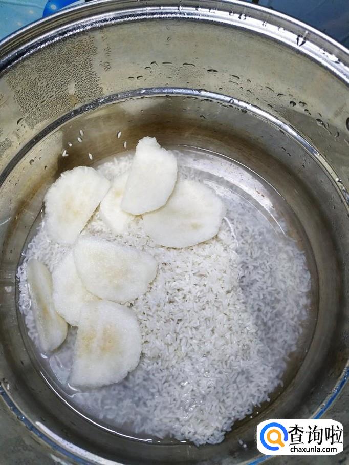 碗中放入适量大米,加入适量清水,泡半个小时左右,然后将大米洗净,倒入锅中。