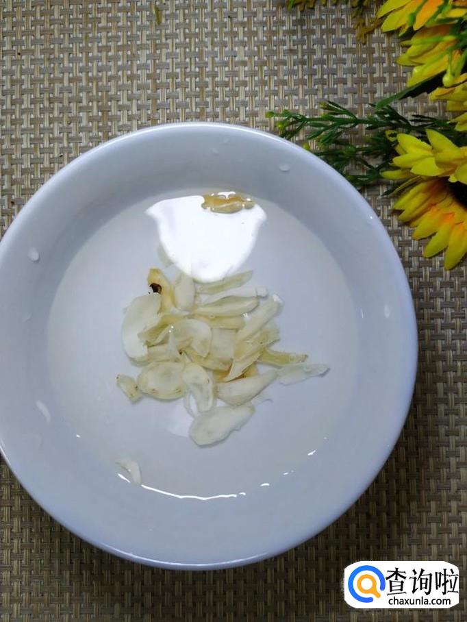 准备适量干百合,用清水泡开,然后将百合也倒入锅中。