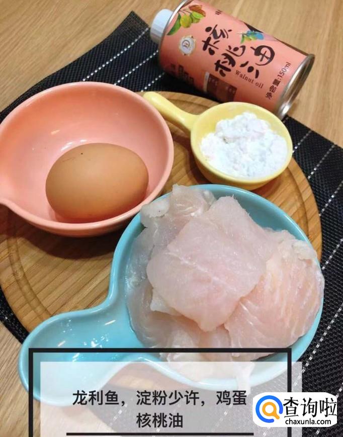 首先准备好要用到的龙利鱼适量,淀粉少许,鸡蛋一个,核桃油适量,如下图所示。