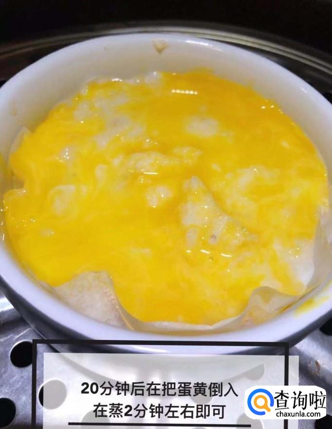 然后倒入蛋黄,再蒸两分钟左右就可以了。