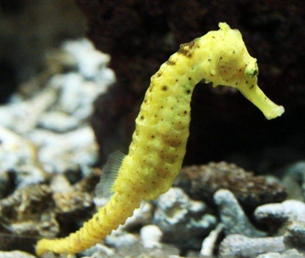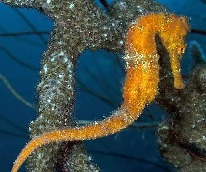 海马属具有不同于一般鱼类的外形,尾鳍完全退化,脊椎则演化到如猴子尾巴一样,可卷曲来钩住任何突出物体,以固定身体位置。