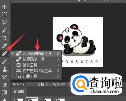 接下来点击左侧工具栏中的污点修复画笔工具。