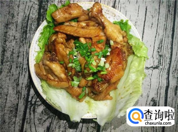 在盆子上摆两片生菜,把鸡翅和可乐汁一起装盆子里,再撒上葱花,即可享受美味又好看的可乐鸡翅了。