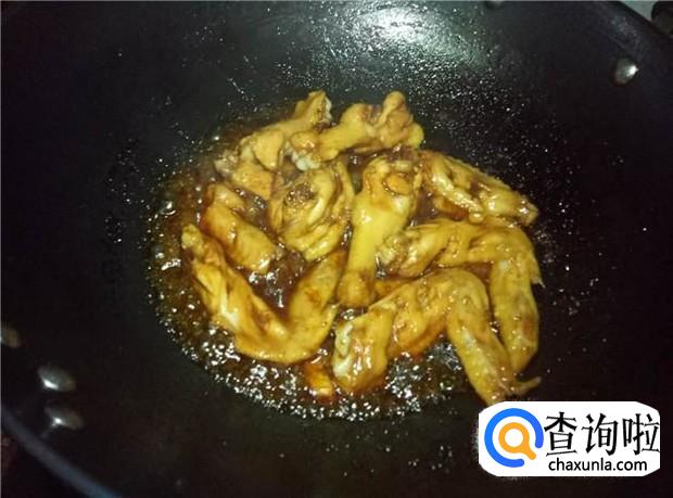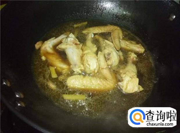 大火焖,中途翻一次,让鸡翅均匀入味。