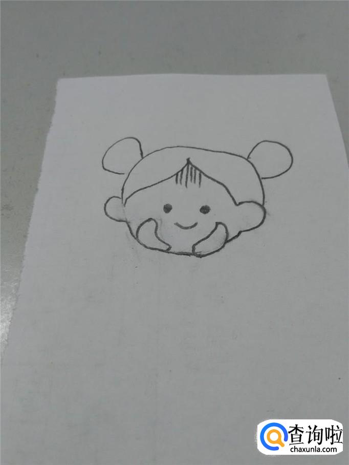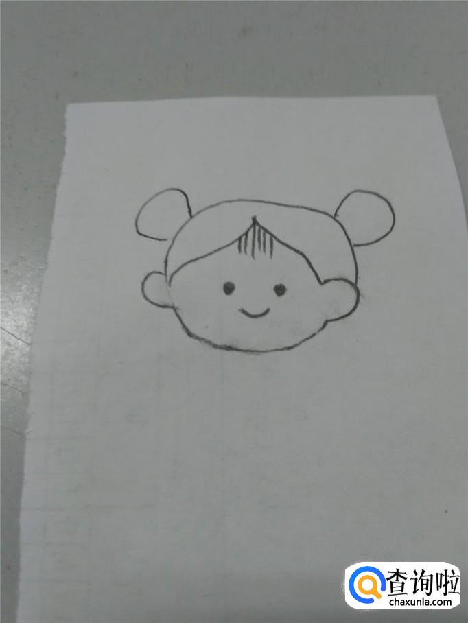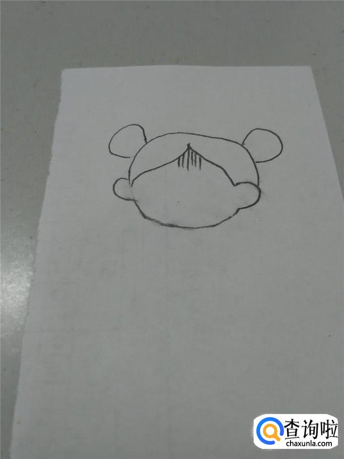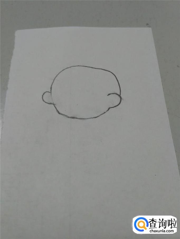 先用笔在纸上画一个圆,表示小女孩的头,因为年龄小,所以头画成圆形比较可爱。在头的左右两边,各画一个半圆,表示耳朵。