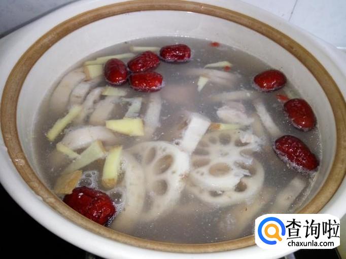 莲藕600克、排骨200克,红枣、枸杞、生姜、盐适量