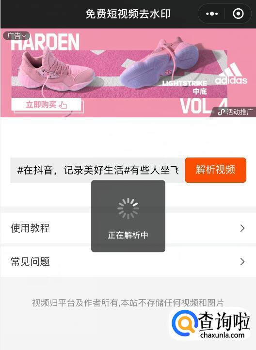 等待解析完成之后,我们抖音视频的水印就去掉了。