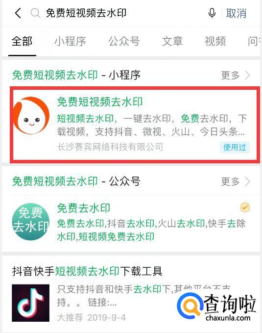 接下来打开微信,在微信顶部搜索栏中搜索“免费短视频去水印”。