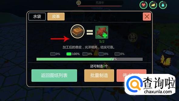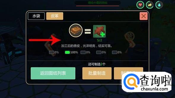拾取完成之后我们回到图纸列表界面,先来制作皮革,记住要2个哦。