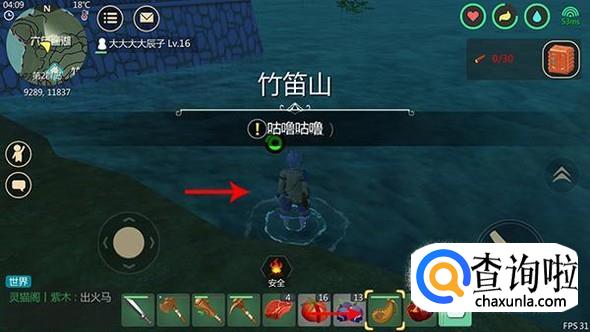 要想喝水的话,将水袋装备在身上,然后点击“攻击”,我们就能够看到人物在喝水了,就能够缓解饥渴了。