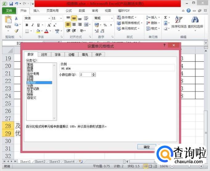 在弹出的对话框中,选择“百分比”,并单击“确定”或直接按“enter”键