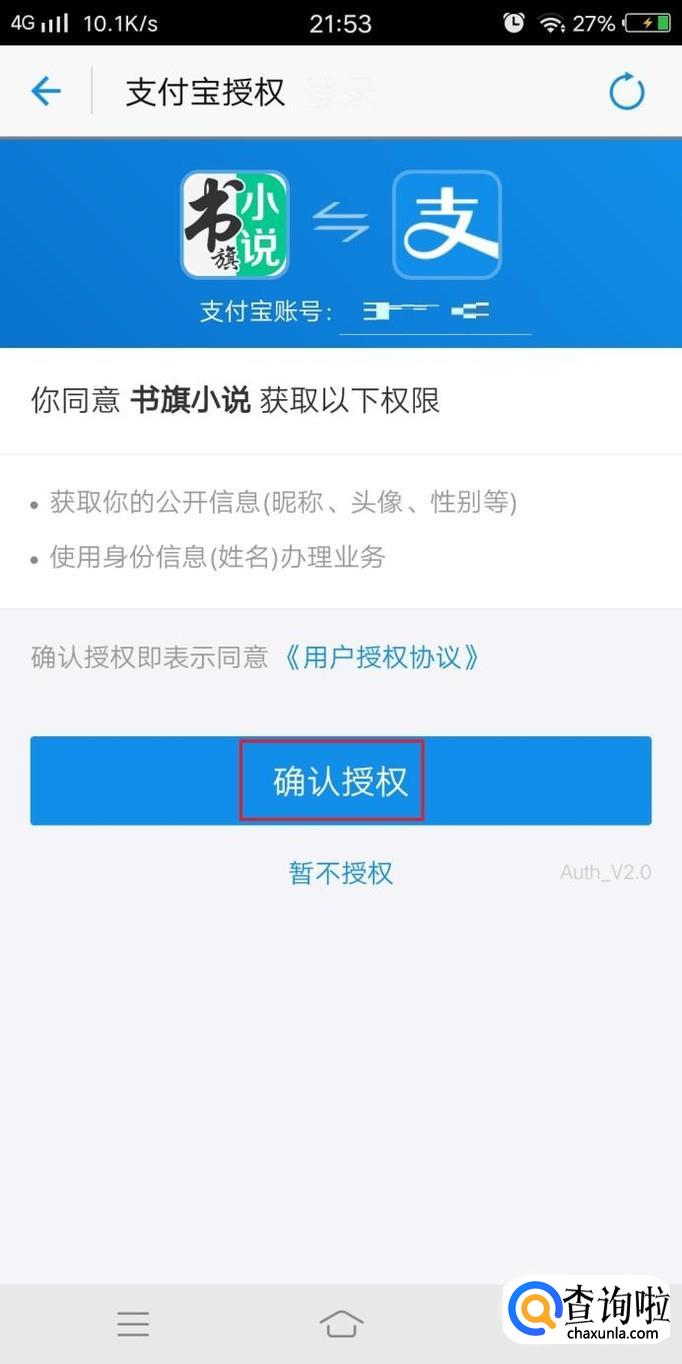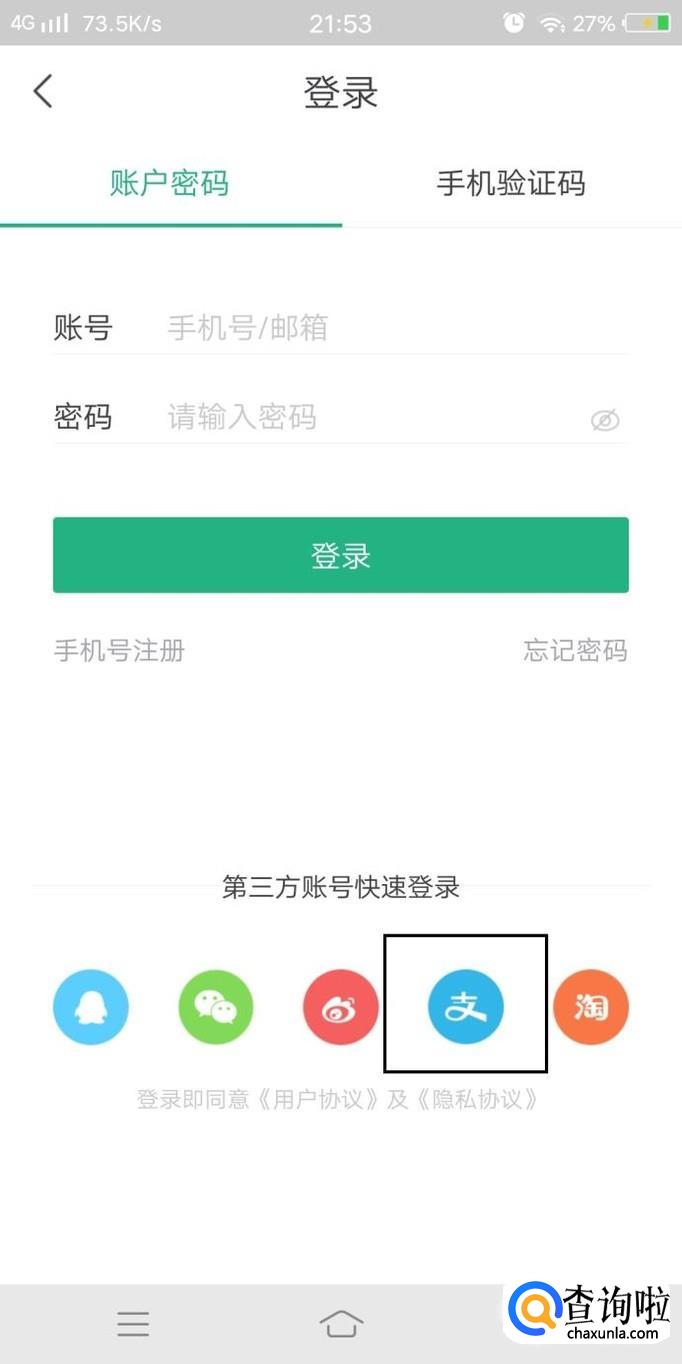 进入登录页面后,选择支付宝授权登录,如图所示