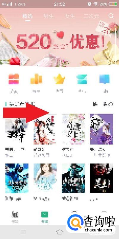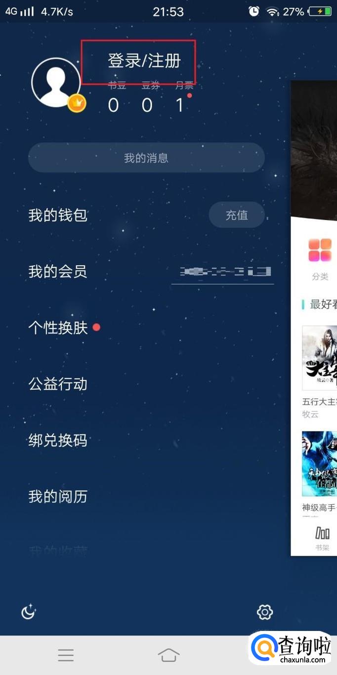 手机进入书旗小说APP,在首页向右滑动屏幕,进入个人中心,如图所示