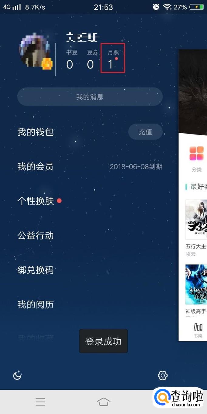 也可以在个人中心中——月票处查看支付宝赠送的超级会员,只要在支付宝中进行爱心捐赠就可以获得赠送超级会员的资格