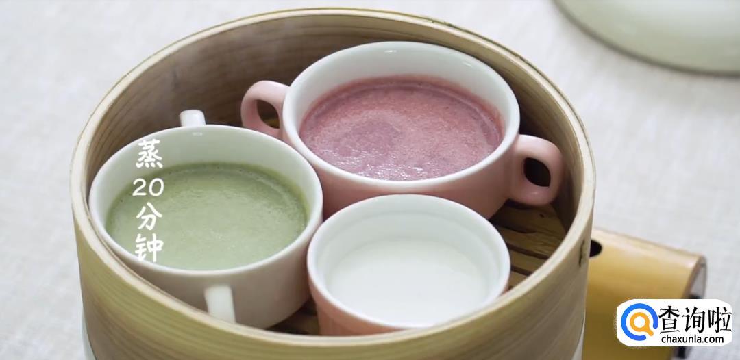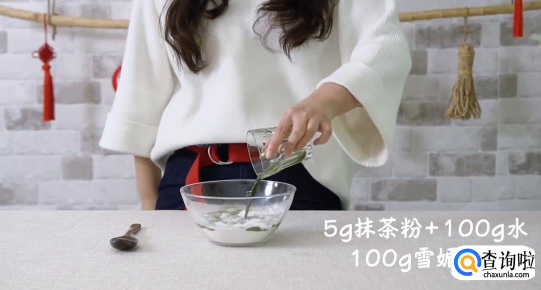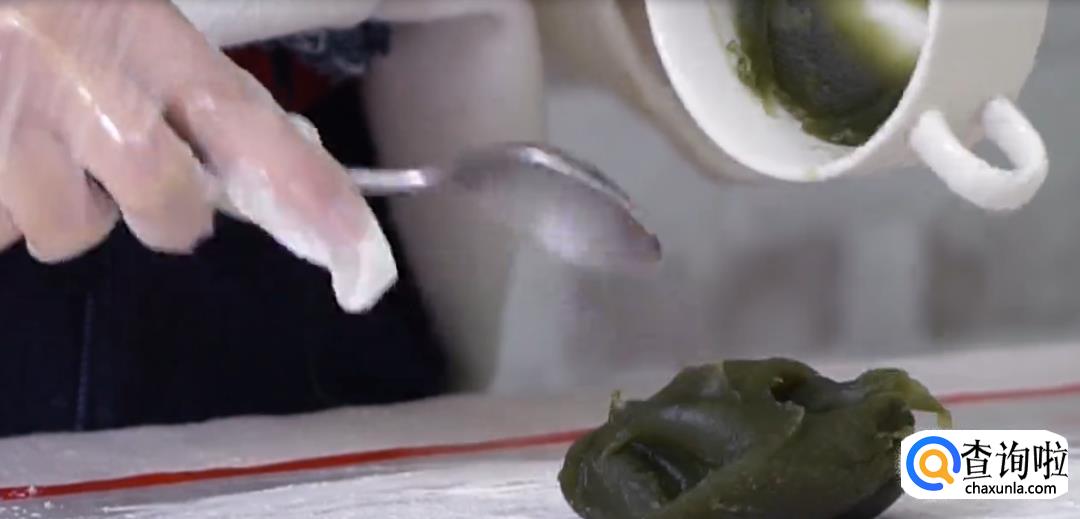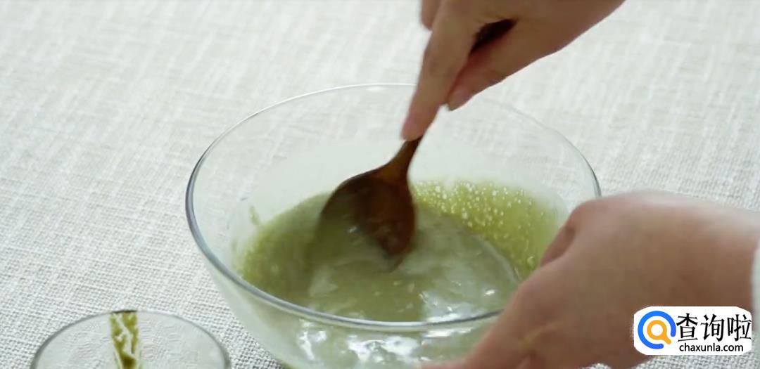 5g抹茶粉加100g水和100g雪糯米粉搅拌均匀后,上蒸笼蒸20分钟。
