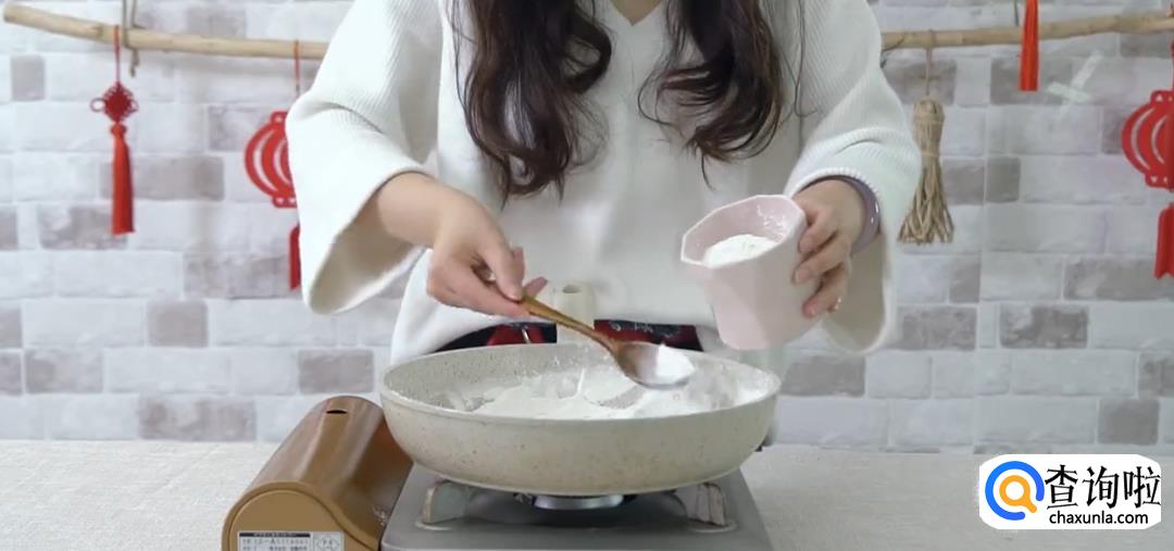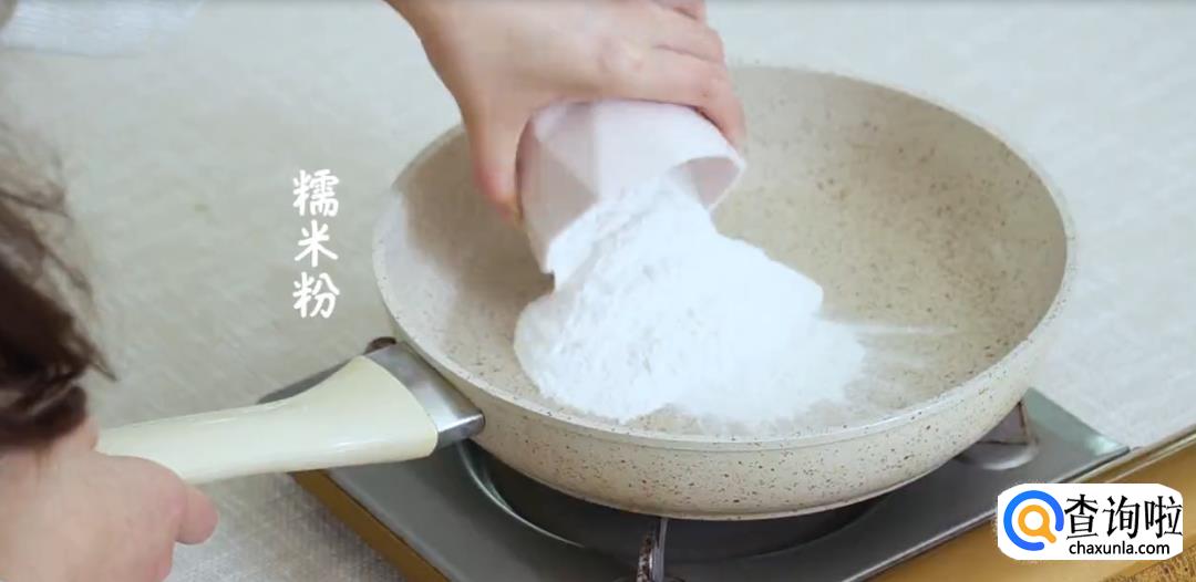 糯米粉倒入盛水的锅中,开火搅拌均匀成糊状装入碗中备用。