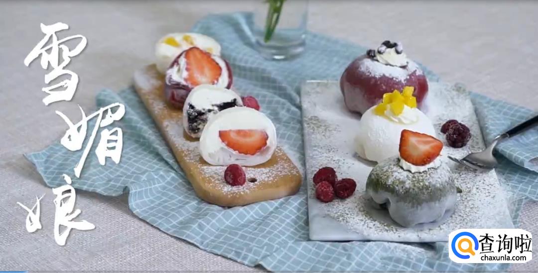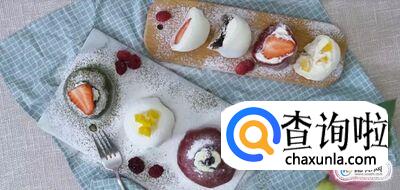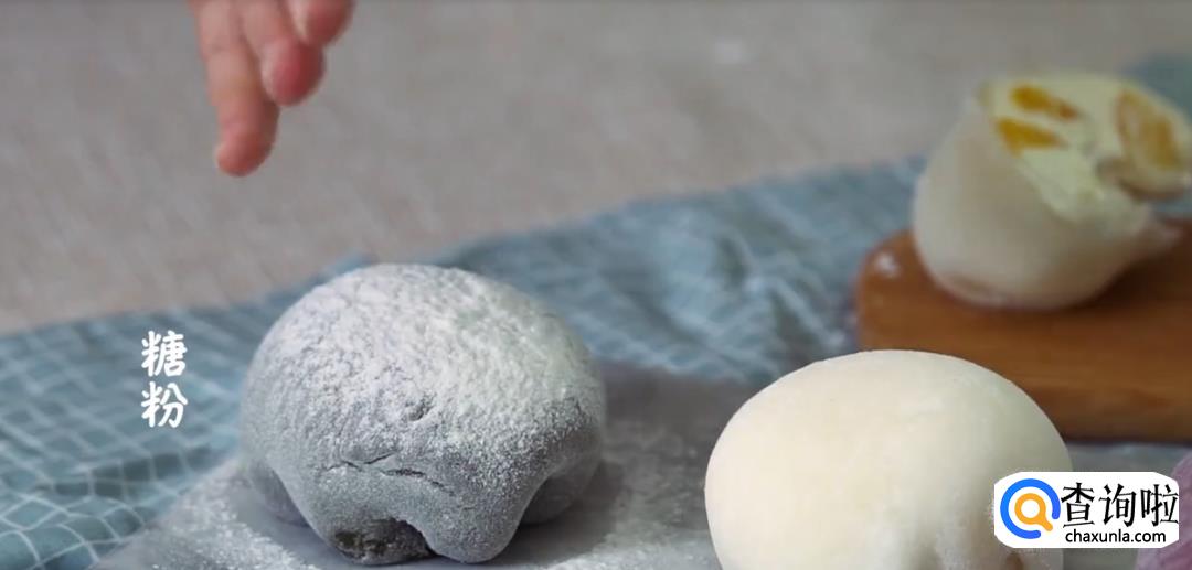撒上糖粉,一个雪媚娘就做好了,按照同样的步骤做出别的颜色的雪媚娘摆盘即可。