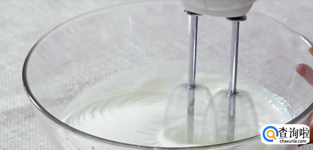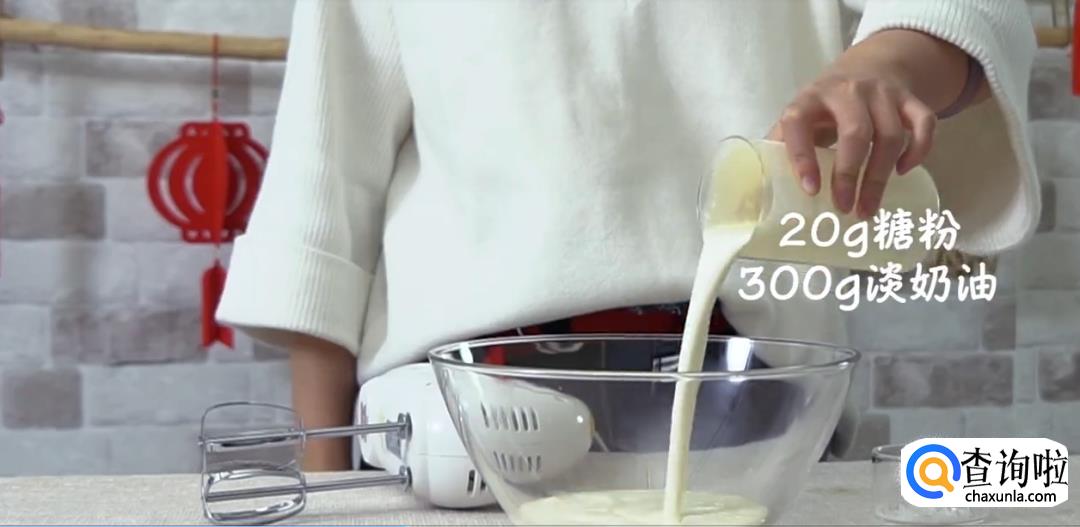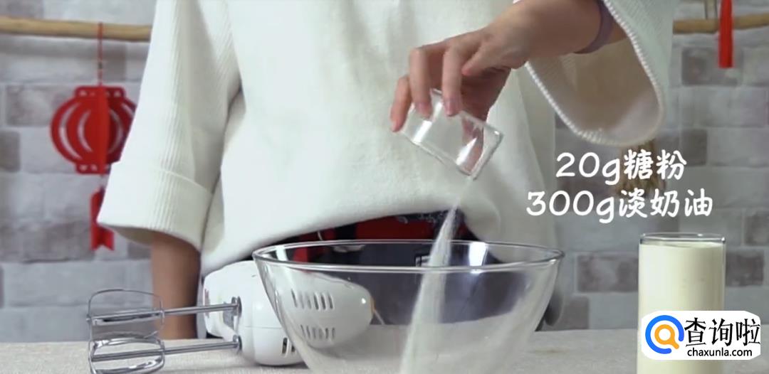 200g糖粉,300g淡奶油用打发器搅拌打发成奶油。
