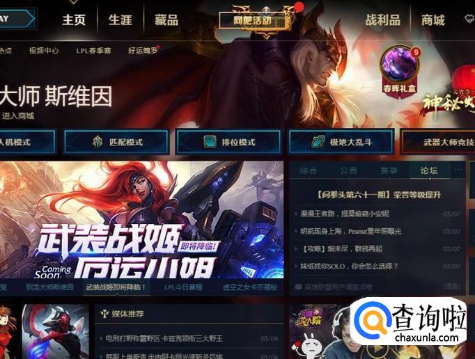 首先登录英雄联盟的界面