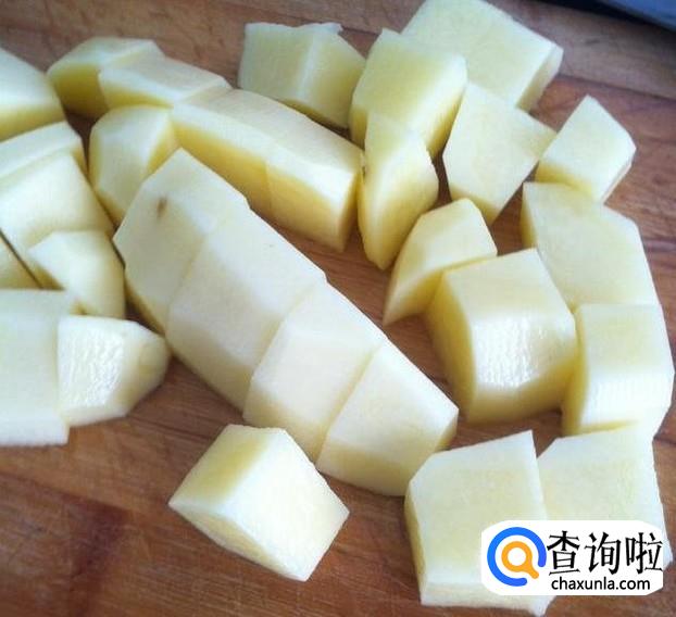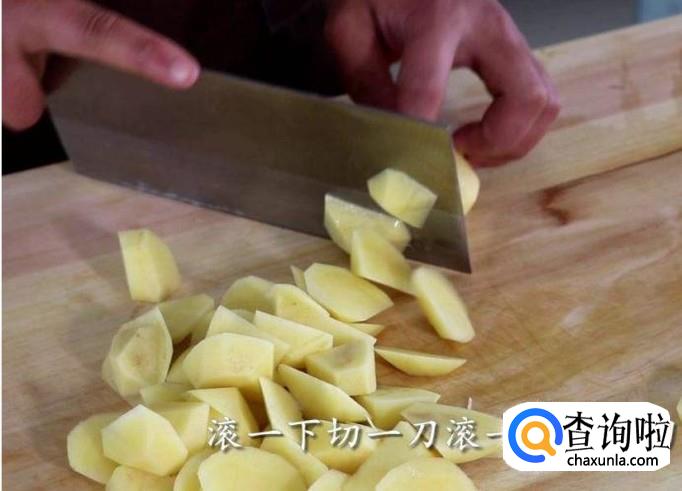 第一种方法:我们可以先把土豆从中间劈开,然后斜着用刀切,切成大小差不多的形状。