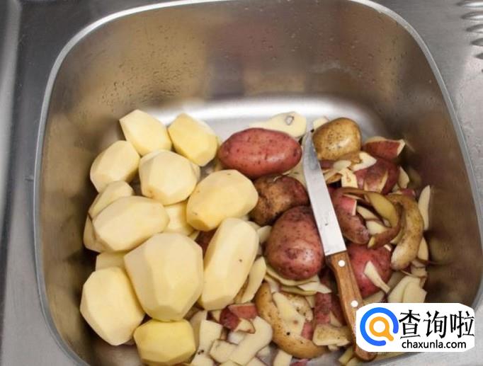 首先我们要把土豆表面的泥土洗净,然后用刮皮器把土豆的皮削掉。
