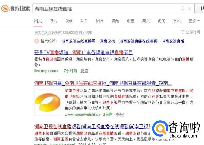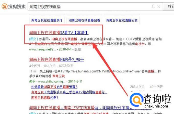 在搜索框中搜索“湖南卫视在线直播”,搜索结果如图所示。