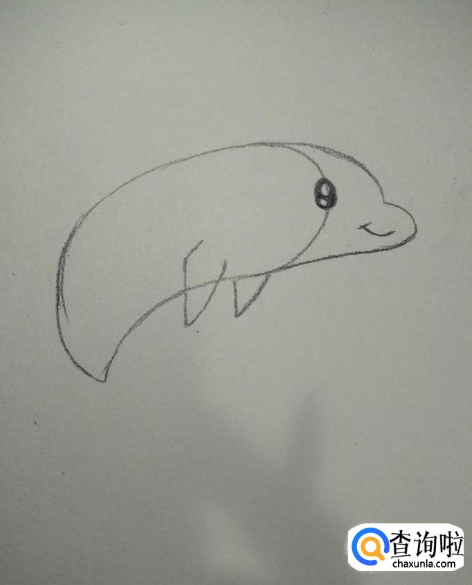 在其背部前1/3的部分画出它的鳍,尽量往低靠一点,尖端圆润一点
