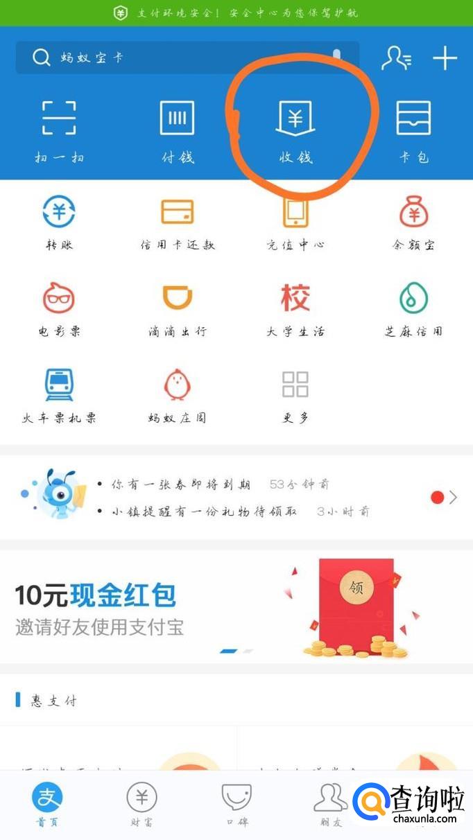打开支付宝首页的“收钱”,如下图所示