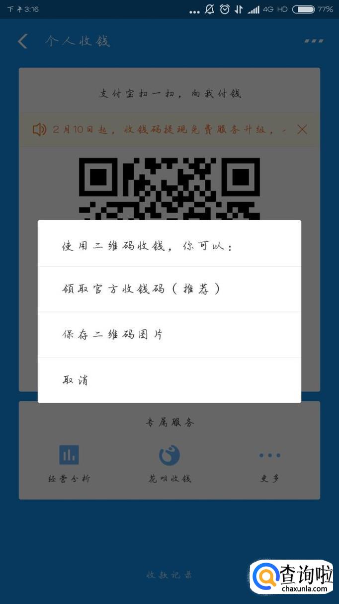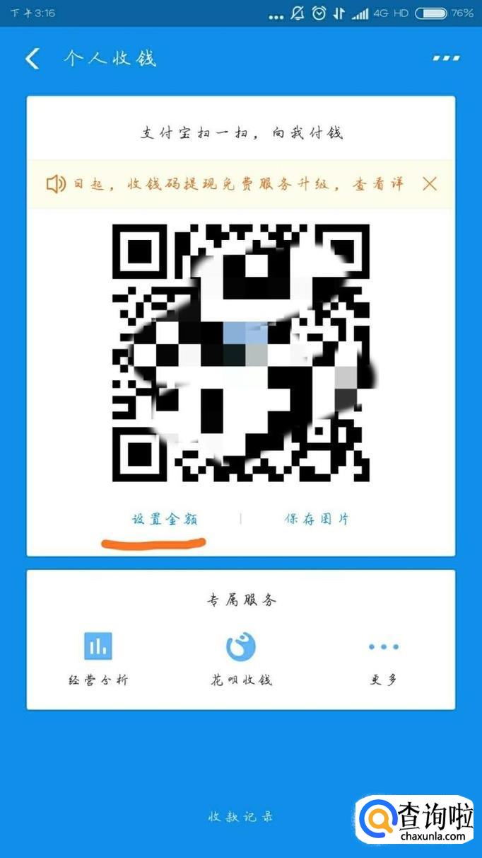 然后会出现你的收钱二维码,如下图所示,
