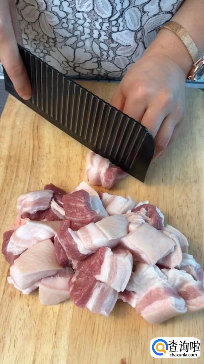 首先将五花肉切成单约2cm左右的块,如下图所示。