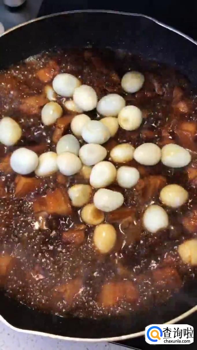 接着往锅中加入适量的鹌鹑蛋,盖上盖子,开小火煮15分钟,如下图所示。
