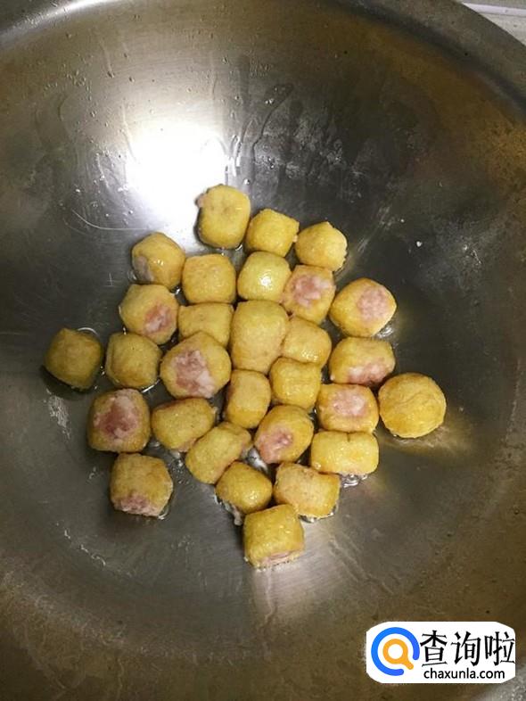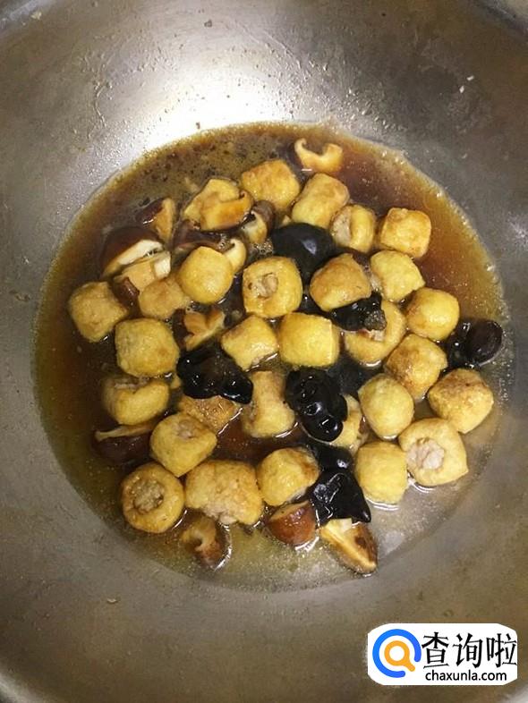 炒锅中放入少许食用油,油温热后放入所有塞好肉的油豆腐,翻炒均匀。