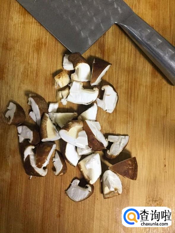 鲜香菇用水冲洗干净后切成小块。