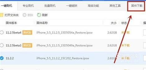 接着点击屏幕右上方的刷机越狱,如下图所示。