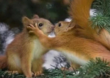 和人类不同,松鼠似乎没有人脸识别系统,当它们见面时,为了确认彼此身份会选择接吻,并且这样确认成功的几率非常高!