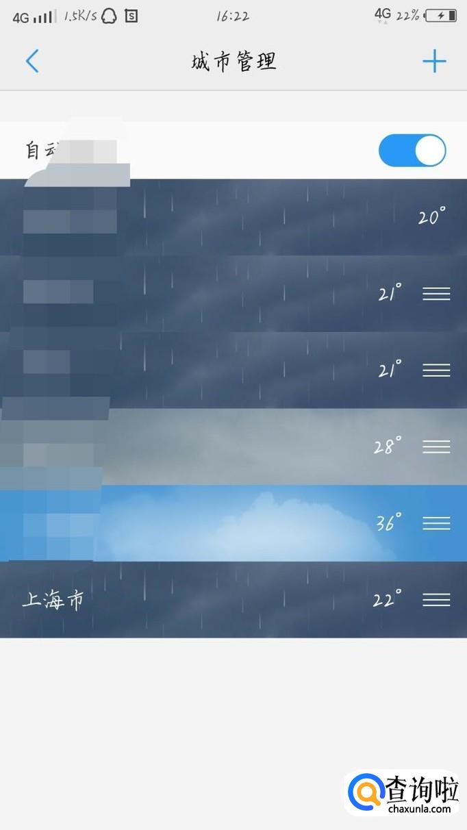 你可以开启自动定位功能,就可以自动定位你在的城市了。如图1所示。如果要添加新的城市就按右上角那个加的按钮如图2箭头所示。