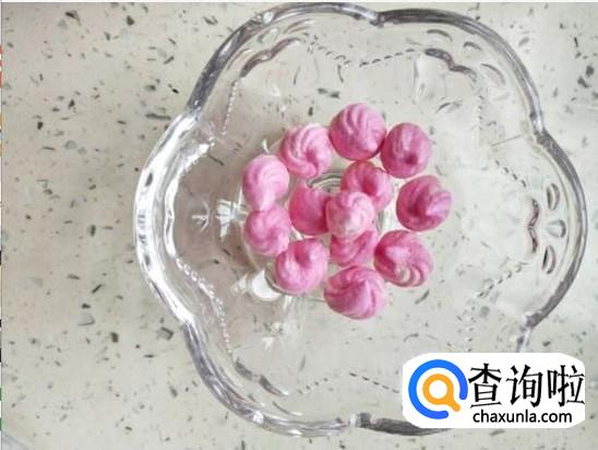 把蛋白跟火龙果泥拌好后就装进裱花袋,可是用手把果泥慢慢挤出来。