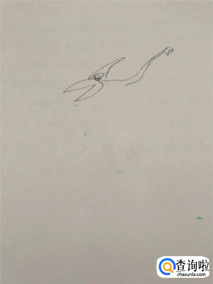 画翼龙先画头,再画翅膀上的上肢和身体上的下肢,最后根据上肢和下肢的位置画出翅膀,下面就来画一只翼龙。