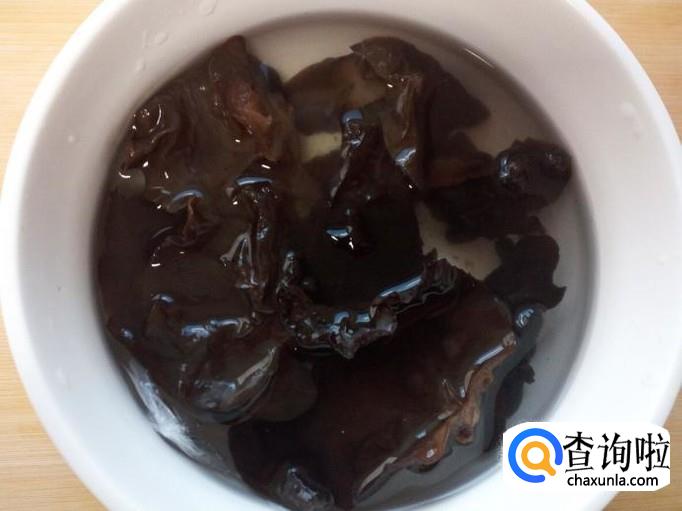 用温水快速泡发木耳。把泡发好的木耳用水清洗干净,攥干水分,切成末。