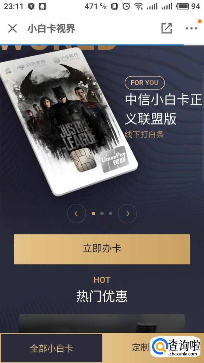 进入小白卡视界界面,点击下方“立即办卡”