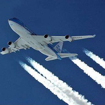 引擎废气引起的凝结碳氢燃料燃烧后的主要产物是二氧化碳和水蒸气。在海拔较高处的低温的环境下,局部水蒸气的增加可以使空气中的水蒸气含量超过饱和点。这些蒸气之后会凝结成微小的水滴并/或小沉积成为冰晶,成千上万的小水滴和/或冰晶形成了飞机云或凝结尾。云的主要组成部分是在空气中漂浮的水份。在高空过度冷却的水蒸气需要一种触发条件以激发它们的凝结或沉淀。引擎废气中的微粒正是起着这种触发条件的作用,促使空气中的水蒸气快速的转变成冰晶。飞机云或凝结尾一般在海拔8000米(26000英尺)以上出现,那里的温度低达-40°C(-40°F)。