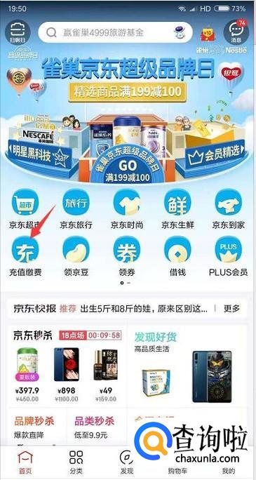 首先我们打开京东登录账号后,在首页里点击充值缴费的功能。