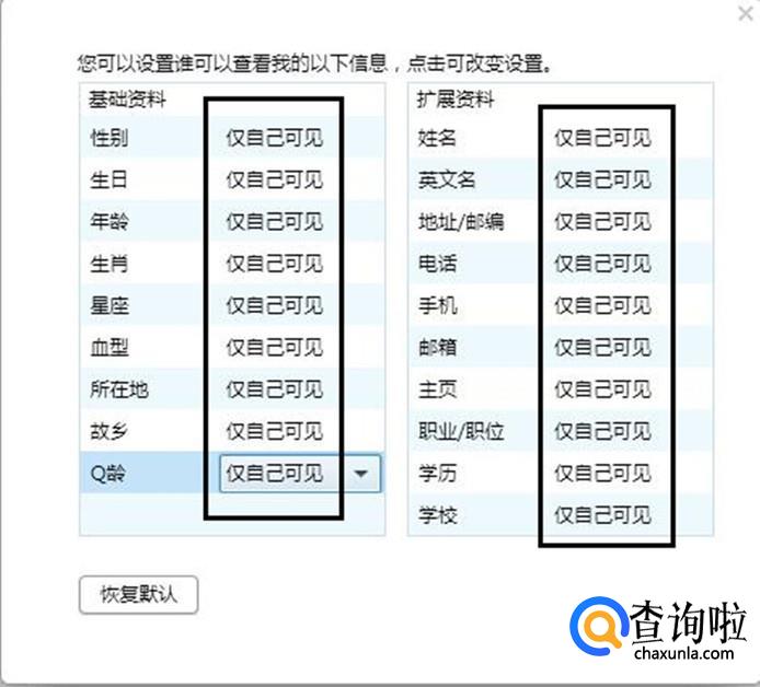 把全部信息设置为仅自己可见;