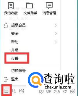 用电脑打开QQ,点击左下方主菜单(三根横线图标)中的“设置”;