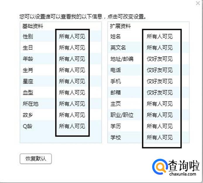 综上所述,当好友查看你的资料时,除了显示QQ号和昵称之外,就没有其他内容了。