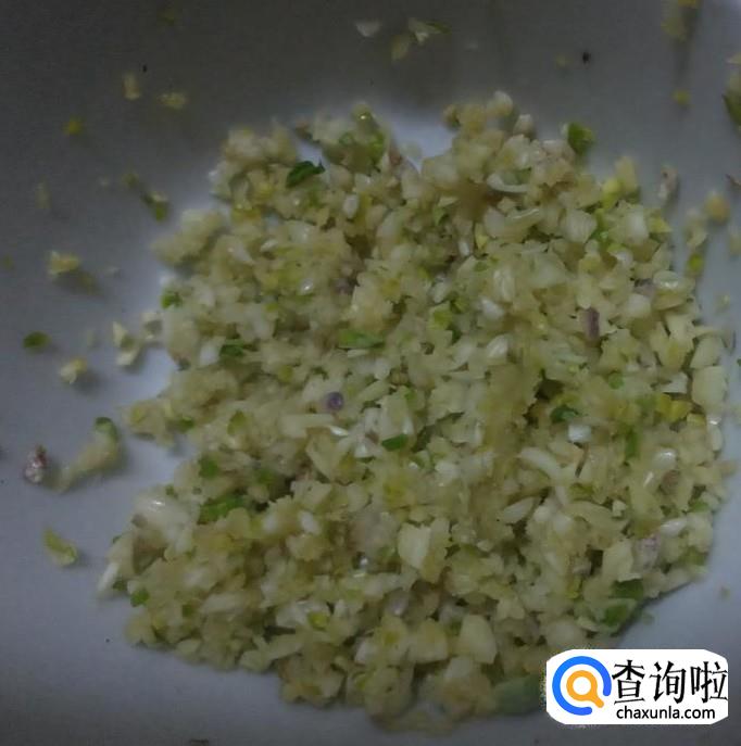将蒜和红尖椒剁细,放在一旁备用