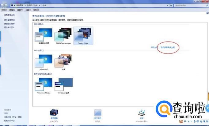 如果壁纸还不够你可以选择后面的“联机获取更多主题”下载就行了。