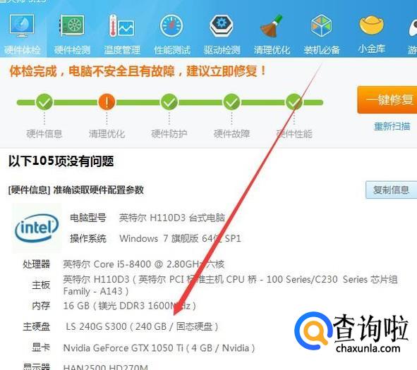 然后找到硬件检测,然后点击,让其进行检测,如下图