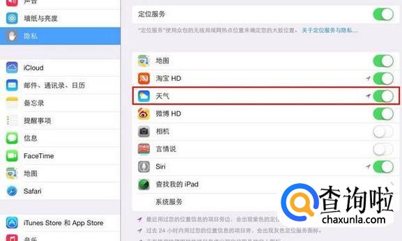 进入隐私以后我们就可以看到有一个定位服务,我们只需要把这个定位服务打开就可以啦!
