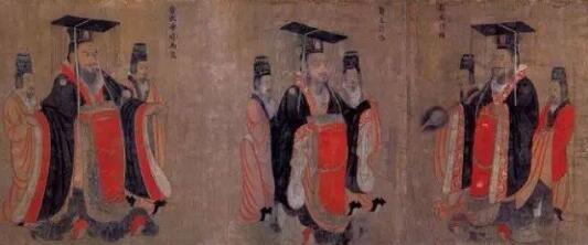比如汉高祖刘邦就自诩为赤帝之子,汉景帝规定官员的车必须用红色的挡泥板,汉初皇帝们还穿红色龙袍。于是就有了《历代帝王图》。